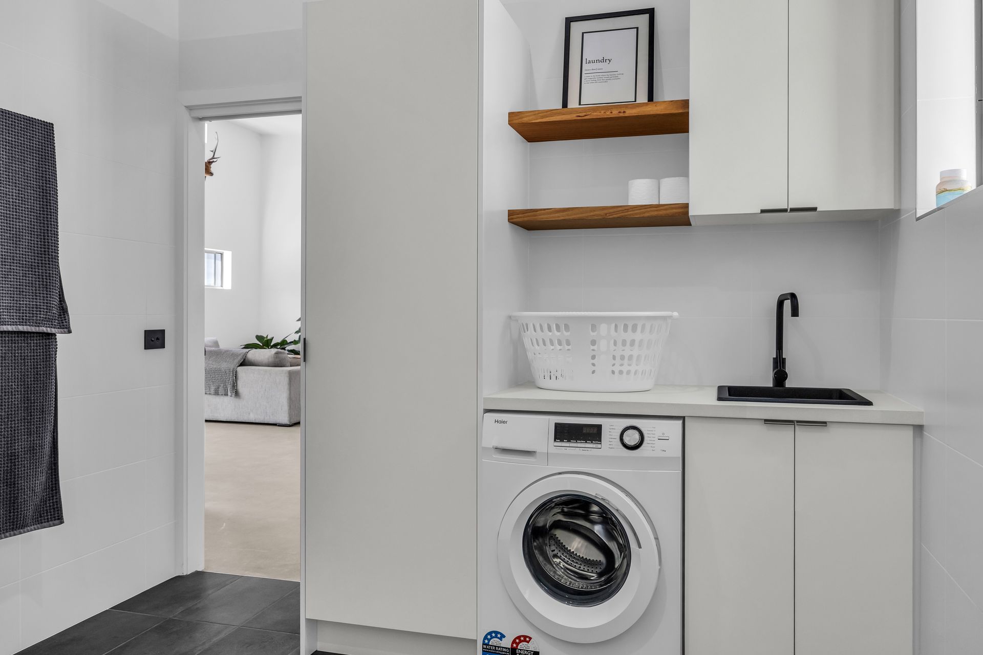 Combined bathroom and laundry.