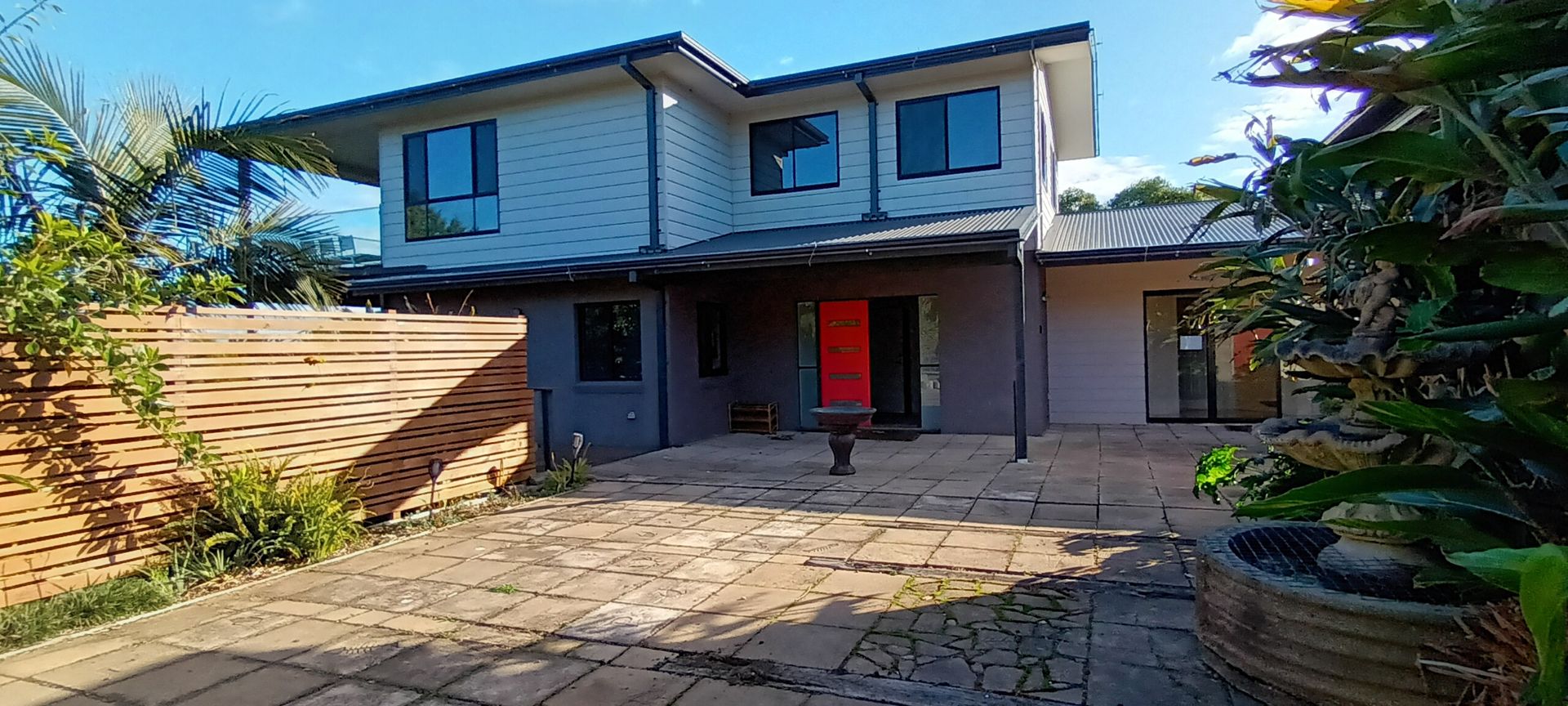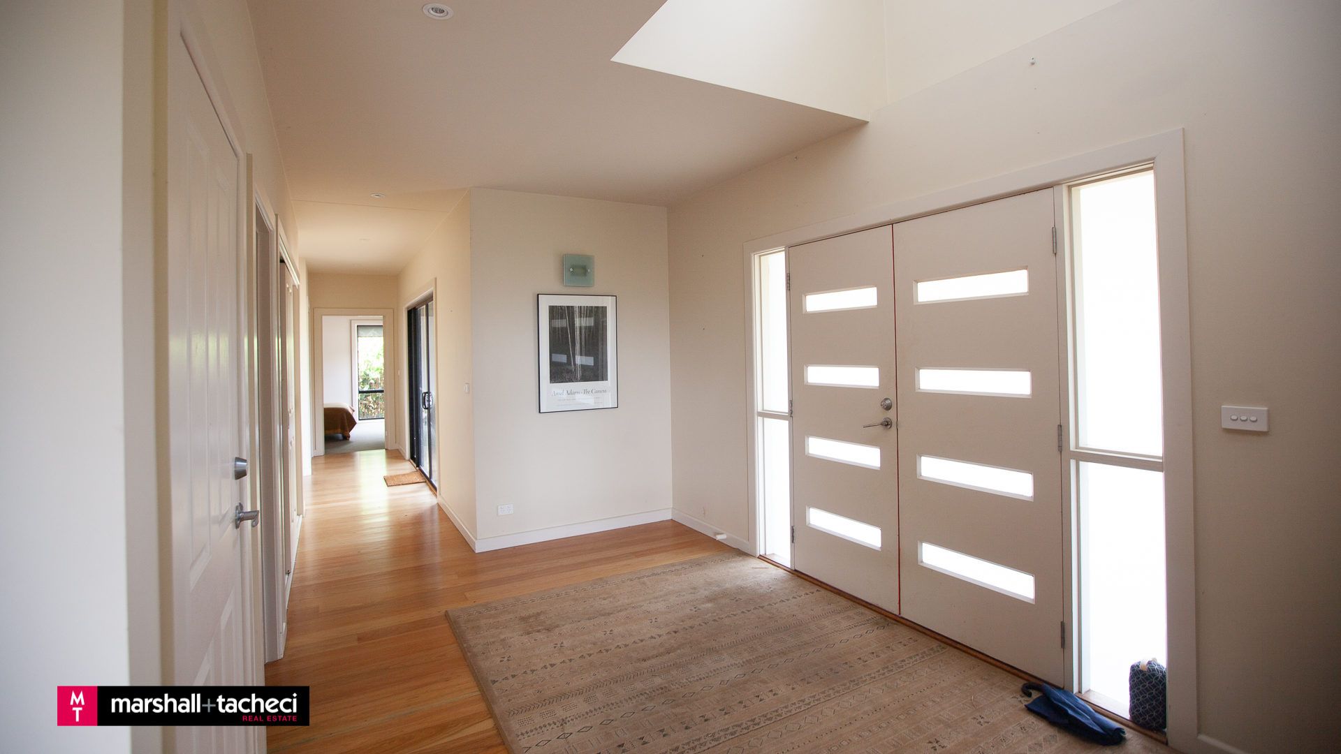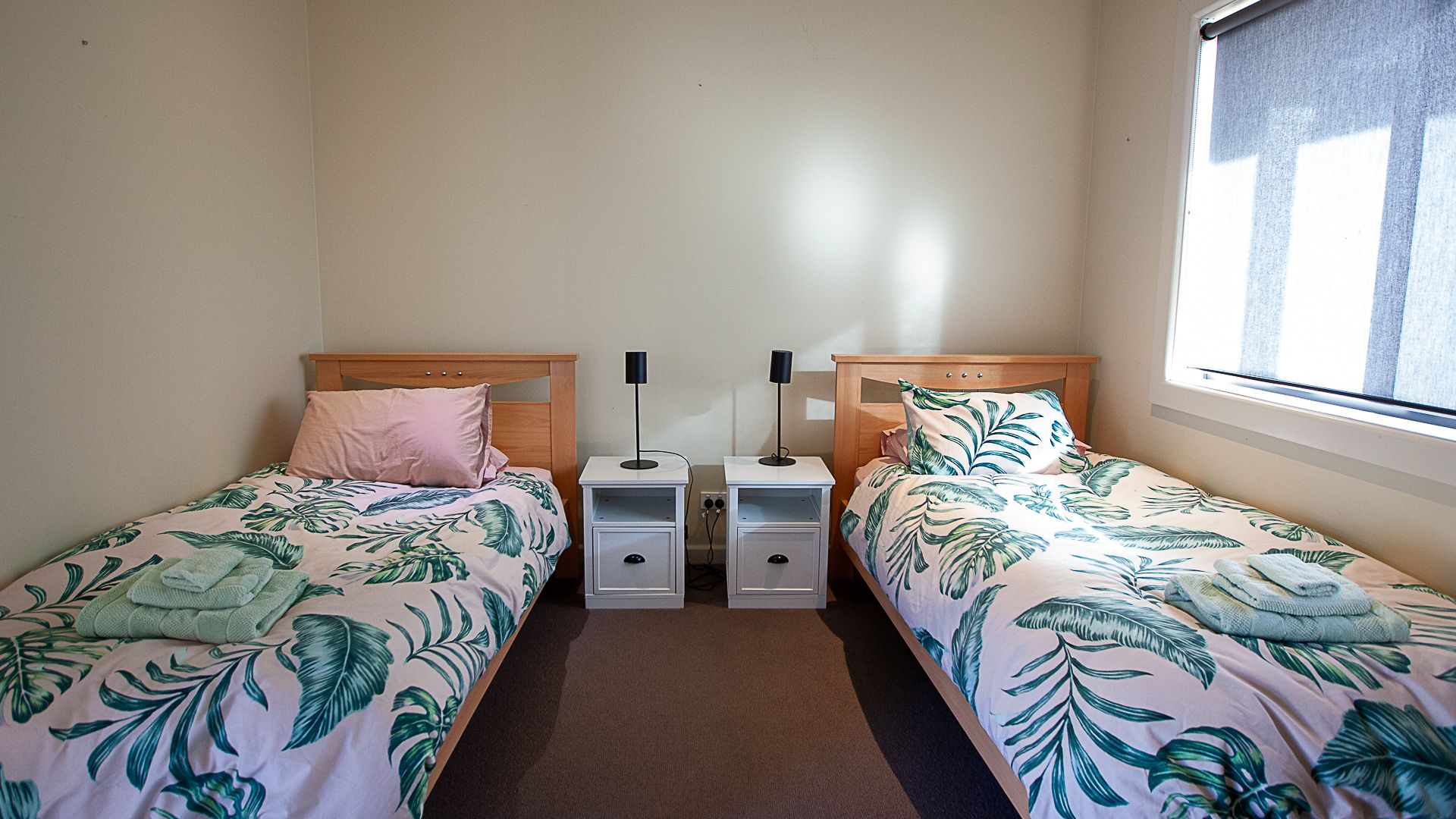 The house opens up into an open plan kitchen, dining and lounge area. The kitchen is fully equipped and modern. The windows open up to a servery bench placed on the gorgeous deck where you can sit to listen to the sound of the ocean.