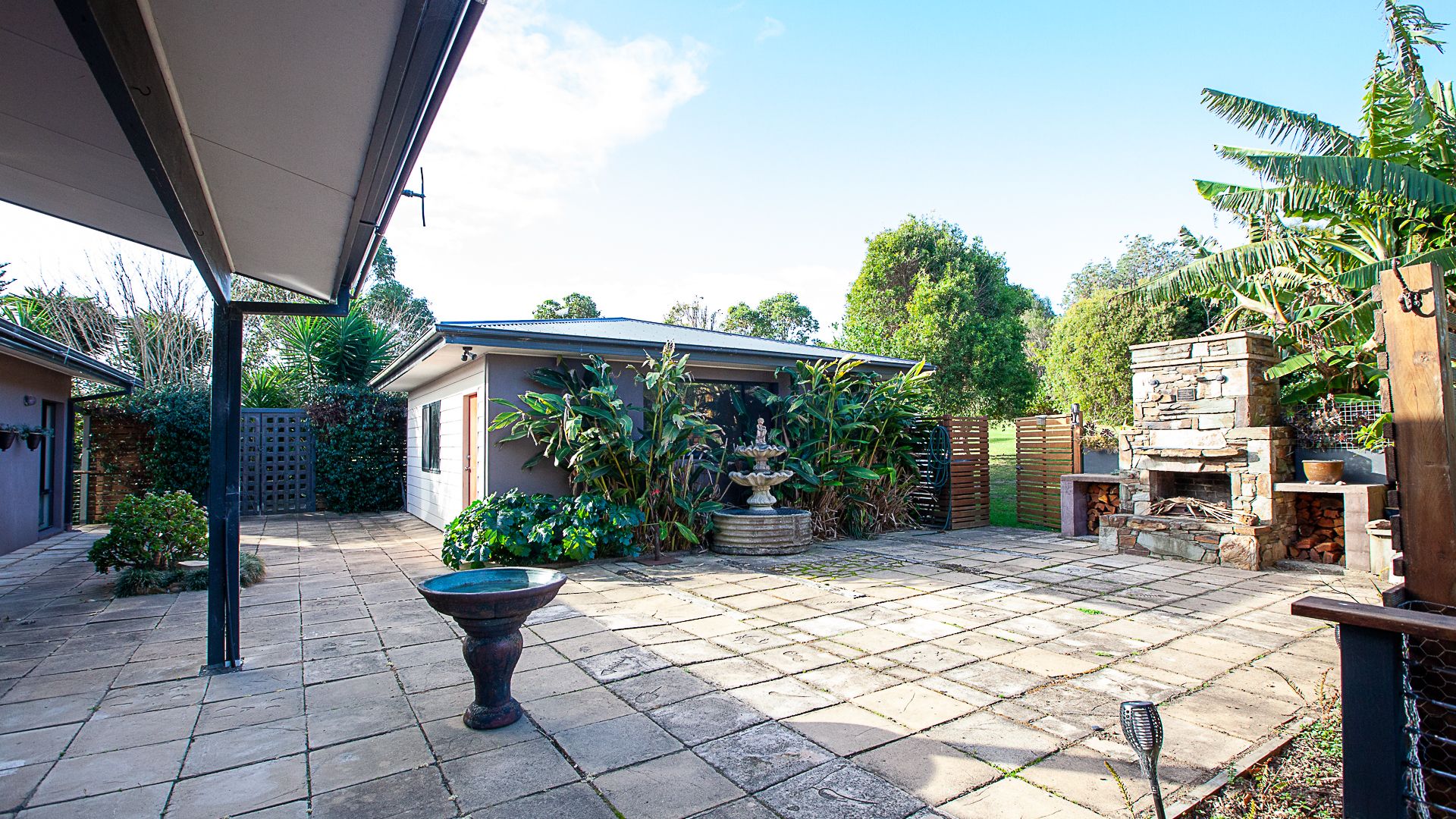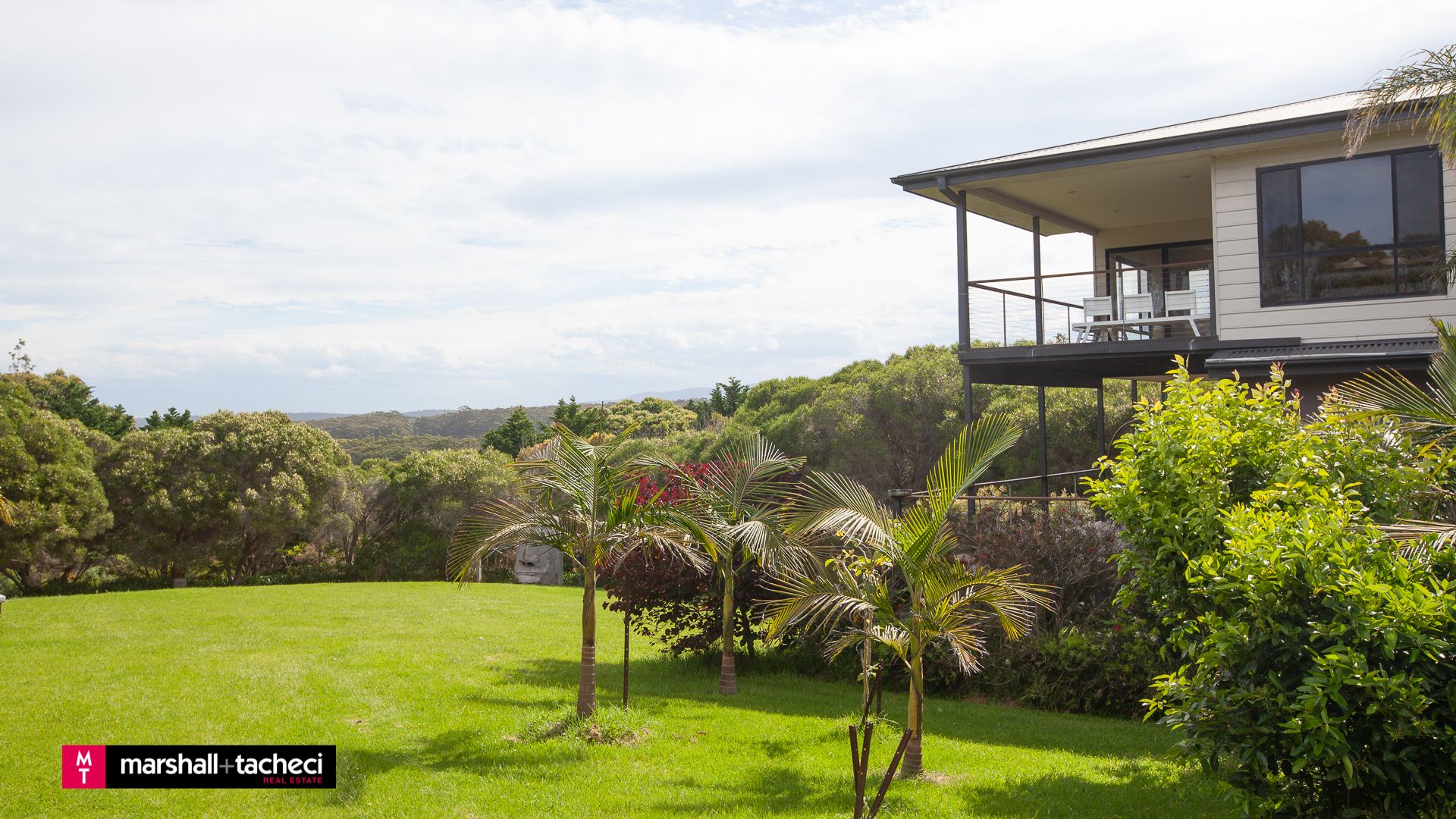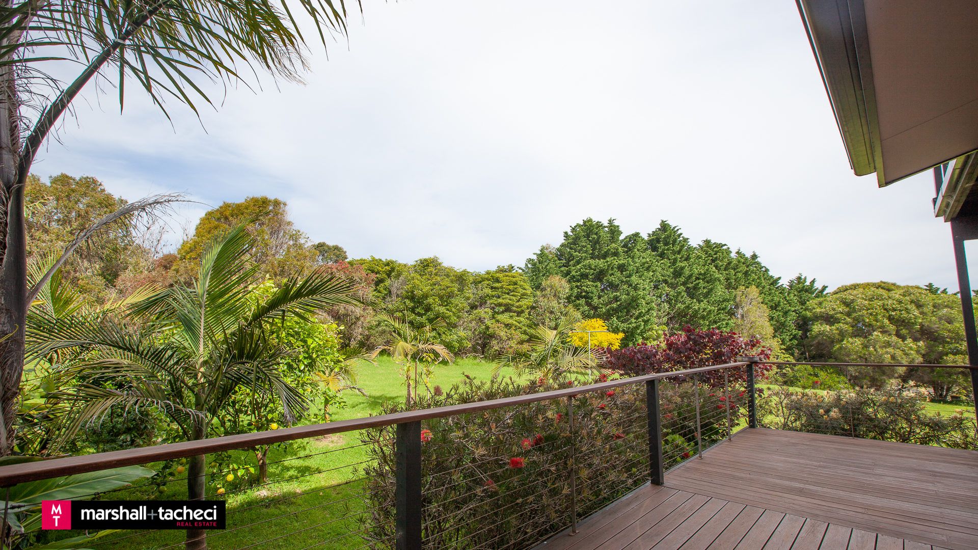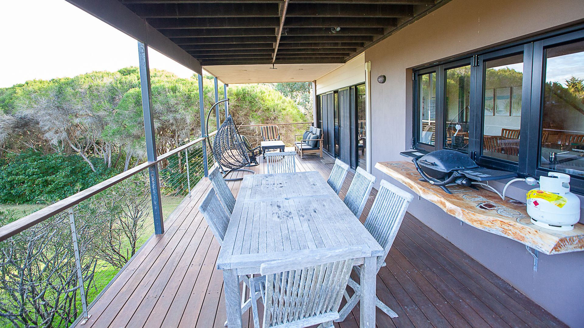 Lounge/ Kitchen/ dining: Flat screen television with lot of lounge seating and a fireplace to keep you warm in winter! There is a large dining table to fit all the family and fully equipped kitchen complete with dishwasher to save you time whilst on holiday! Severy from the kitchen window to the outdoor dining set up with BBQ Wrap around lower deck with ocean glimpses and an outlook of the perfectly maintained gardens.