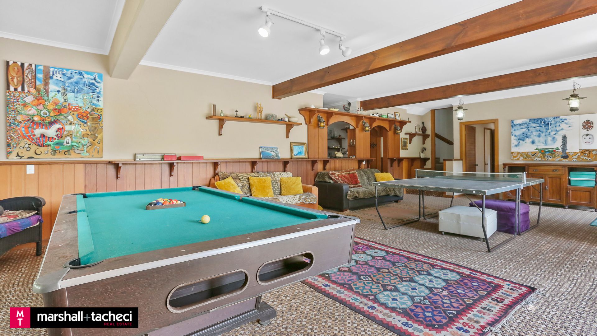 Downstairs you'll find an extra two bedrooms with a large games/rumpus room boasting a pool table and table tennis table.