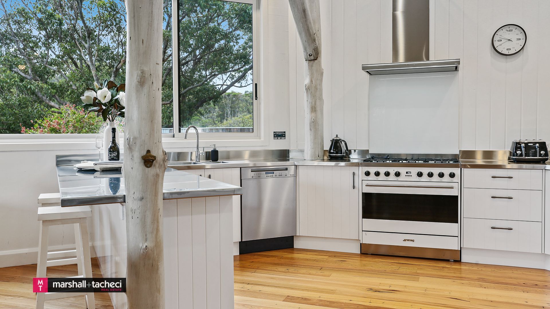 The designer kitchen features stainless steel bench tops, a gas cooker/electric oven, rangehood, dishwasher/microwave. Making this a perfect place to unwind/relax in style and comfort, spend days and evenings outdoors and indoors.