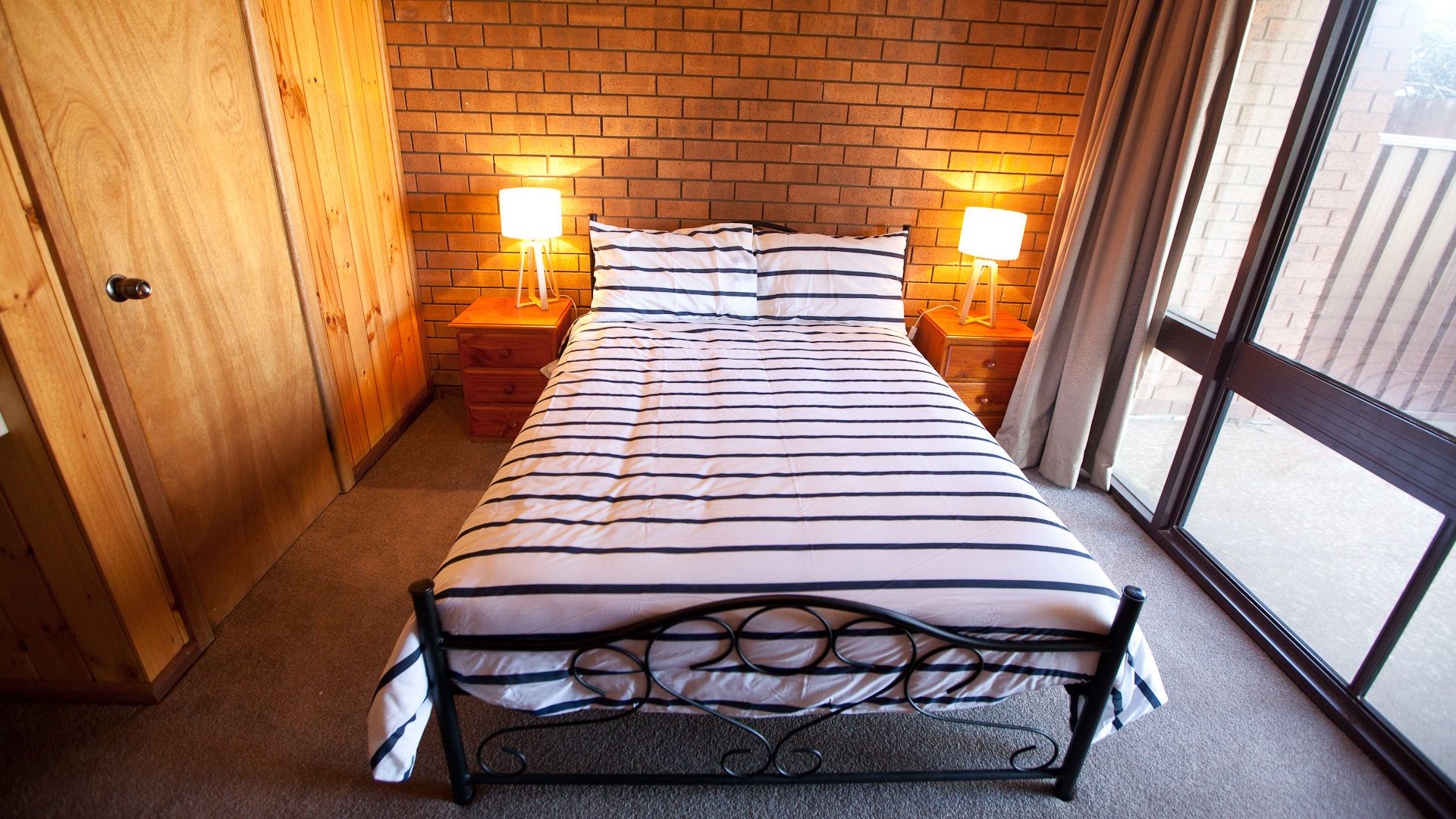 Downstairs has 1 queen bedroom, 1 double and a rumpus room with 2 single beds, couch and TV