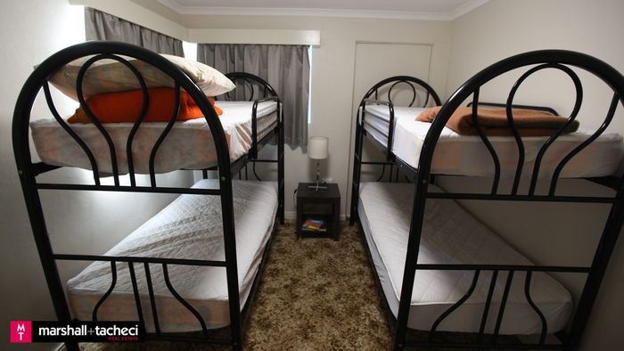 Bedroom 2 has 2 sets of single bunks.