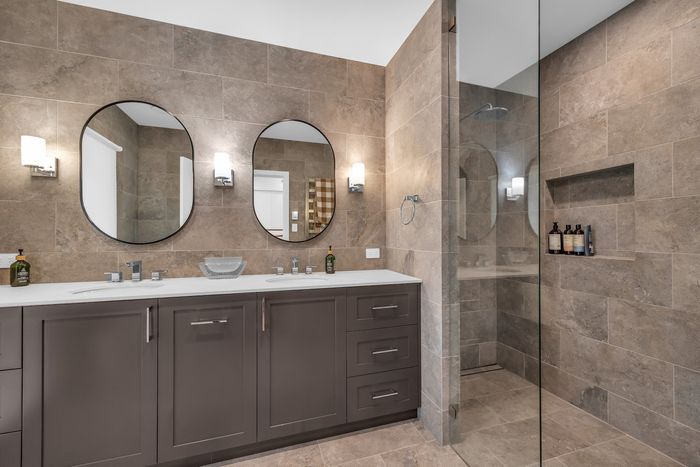 4 bedrooms are all king rooms with king beds, and 2 bedrooms feature ensuite bathrooms with in floor heating. The 5th bedroom is set up as a bunkroom for 4 children. All rooms are light and airy and most feature a view of the farm and surrounds so you can wake up to a sunny, magnificent view.