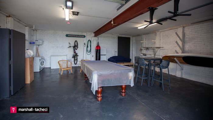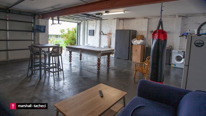 Double garage with Pool Table, Bike racks, laundry with washing machine, shower, lounge, TV, BBQ, Bar table and chairs .