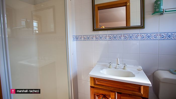 Upstairs there is a large main bedroom and ensuite with lots of sun and views out toward the ocean. Reverse Cycle air conditioning
