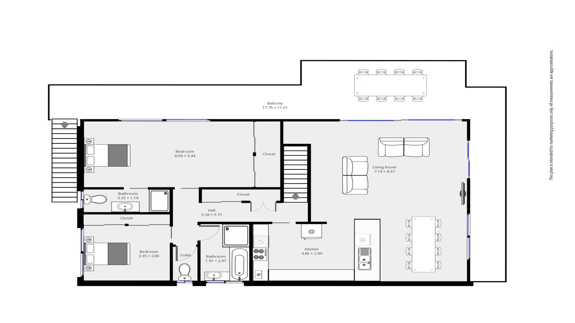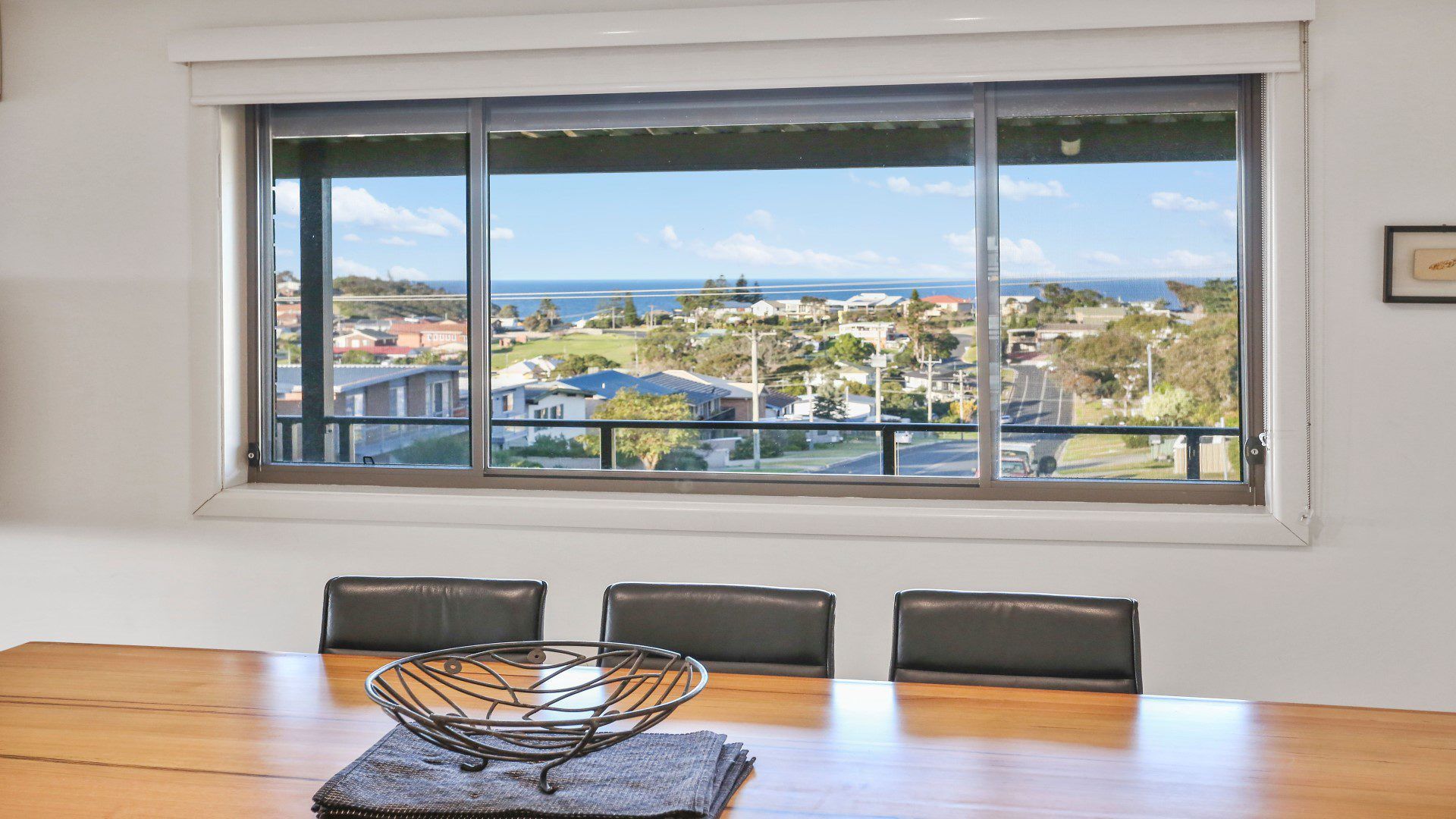 Lounge/Kitchen/Dining: all located upstairs and overlooking the whole town you can take in the amazing view from the large outside table and chairs located on the deck. The lounge/dining room boasts a large flat screen Tv, two lounges with coffee tables and a 10 seater dining table with reverse cycle air conditioning to keep the air a comfortable temperature. The large kitchen is renovated and fully equipped.