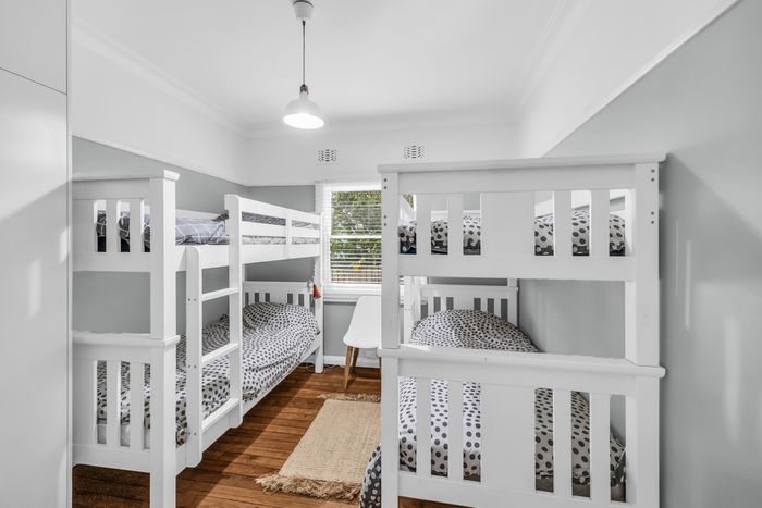 Walk through the lovely hallway with the main bedroom at the front of the house, second bedroom consists of 2 sets of bunk beds for the kids enjoyment and a 3rd bedroom at the end.