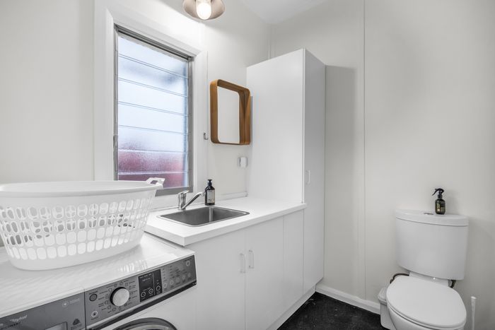 Lovely open plan dining space off of the kitchen, bathroom with a shower over bath and a large separate laundry with toilet.