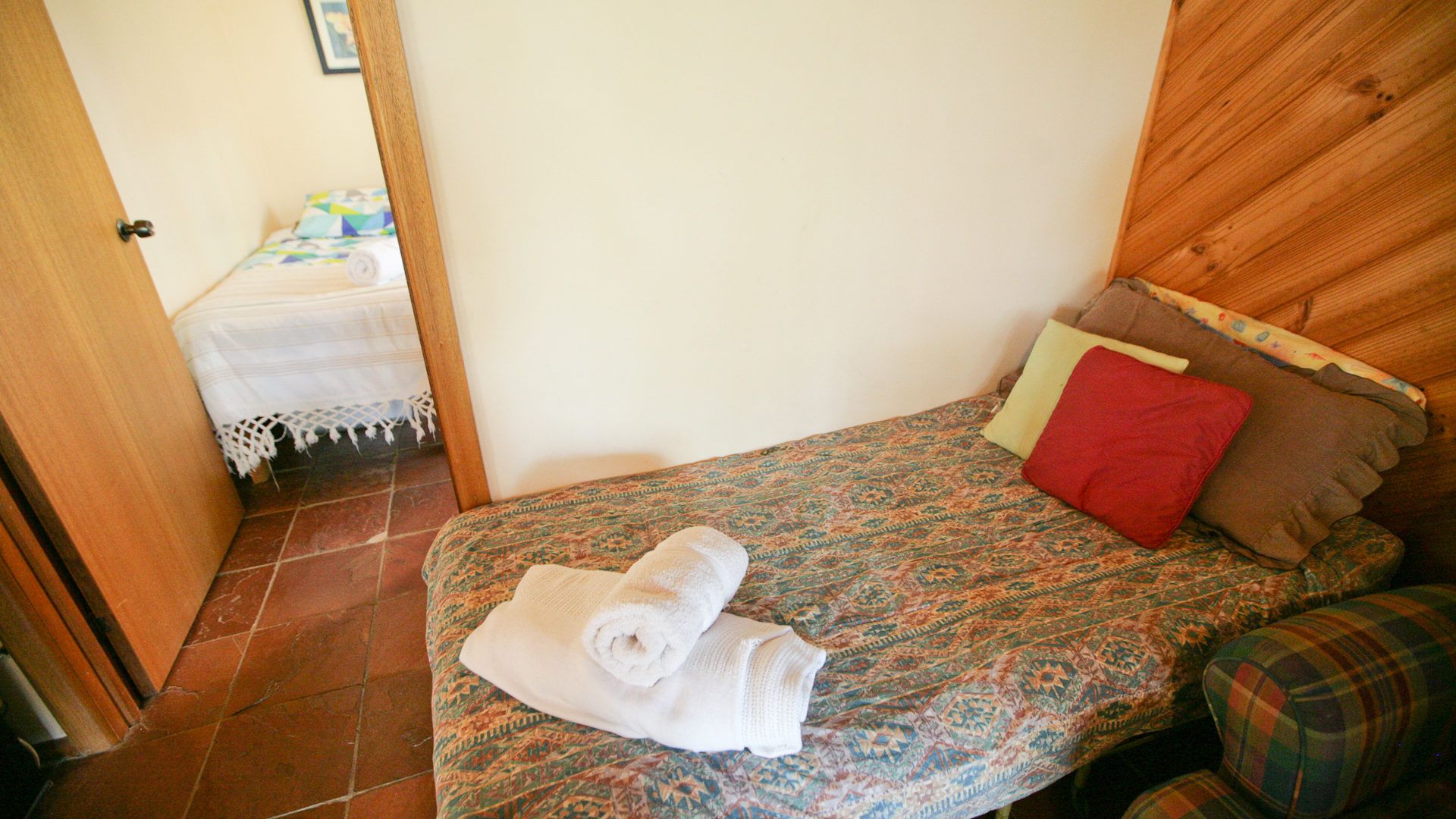 Sleeps 5 - 2 bedrooms with 1 queen bed, 2 single beds and 1 single bed in lounge area.