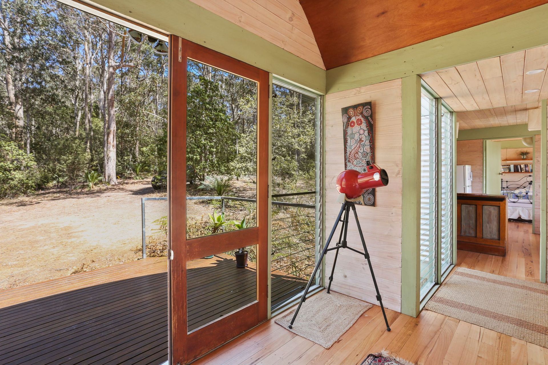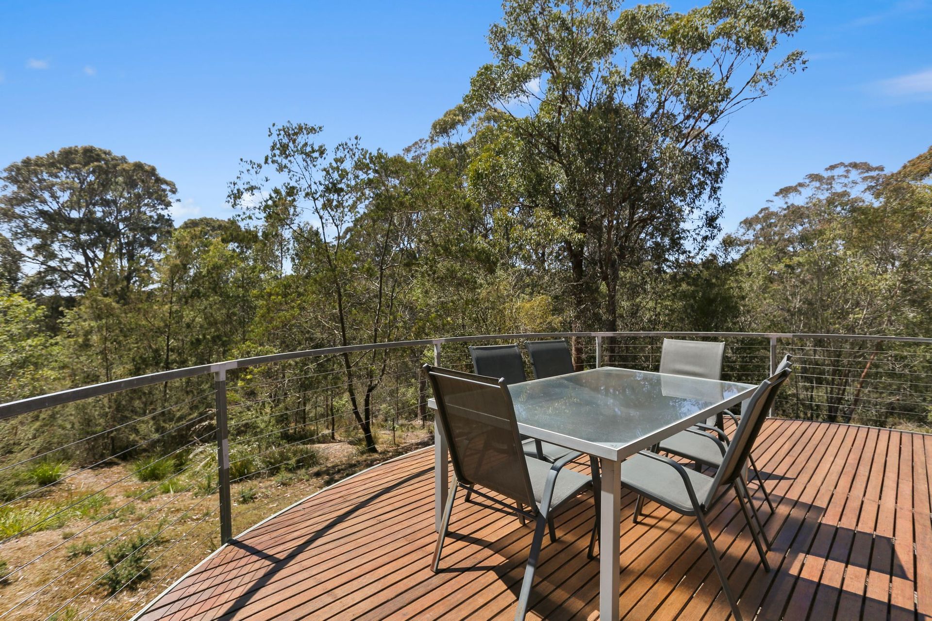 Expansive windows provide uninterrupted views of natural bushland, with louvers to catch the sea breeze. This property offers total seclusion with no distractions. 10 minutes walk along bush track to Armonds Beach clothes optional - or a few minutes drive to Barragga Bay Beach and Cuttagee Beach and Lake.