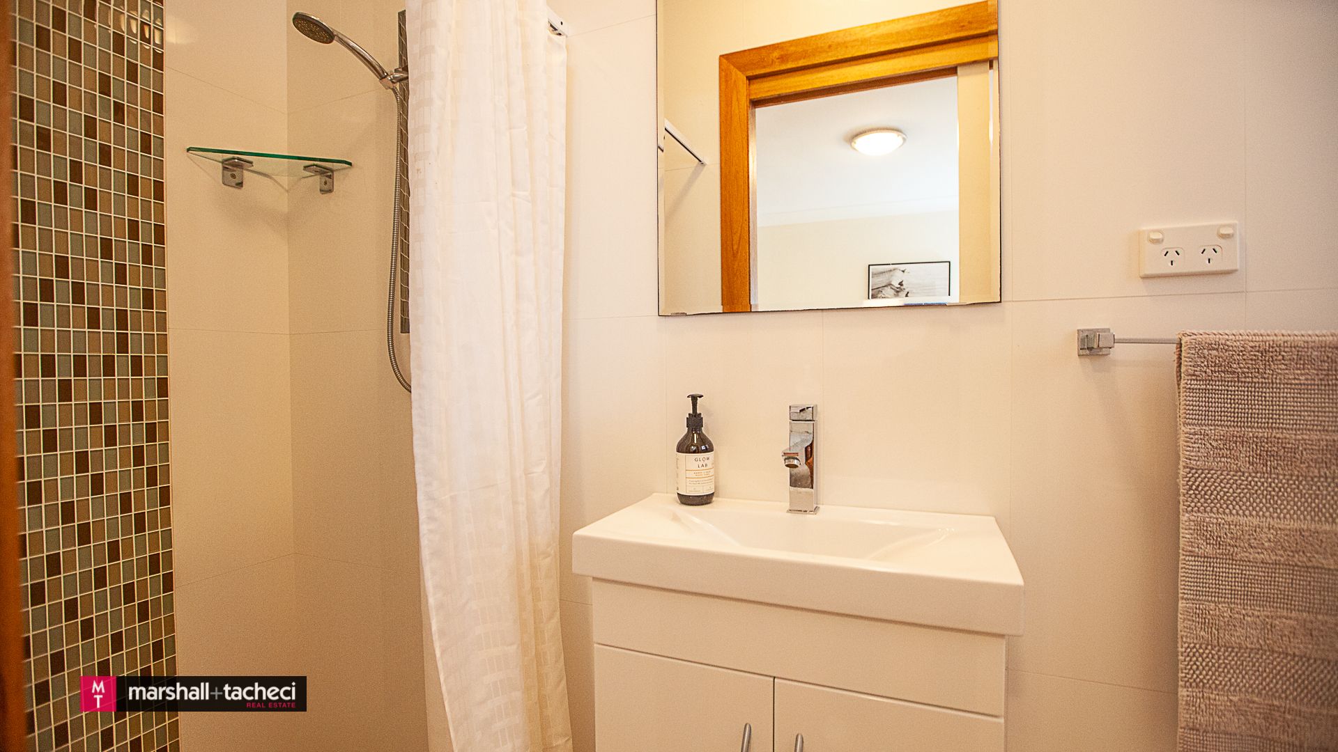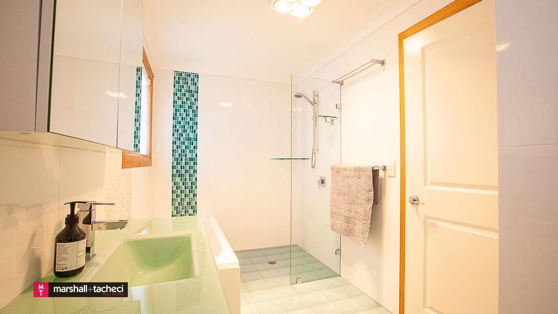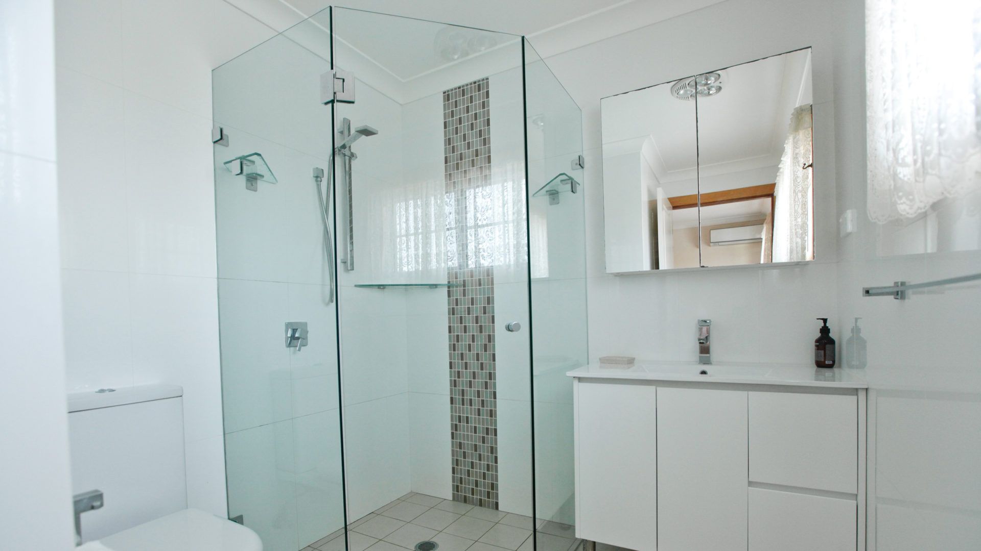 The main bathroom has a shower, bath, vanity, mirror cabinet and a toilet.