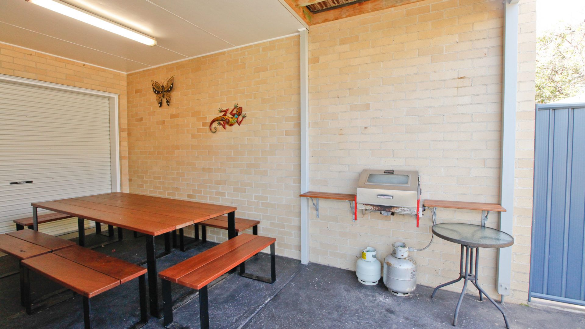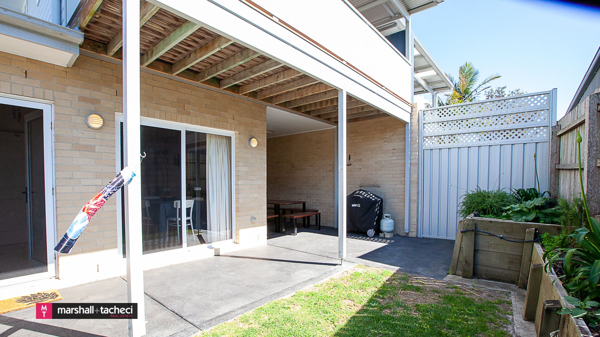 The back courtyard has a large outdoor setting and Webber BBQ.