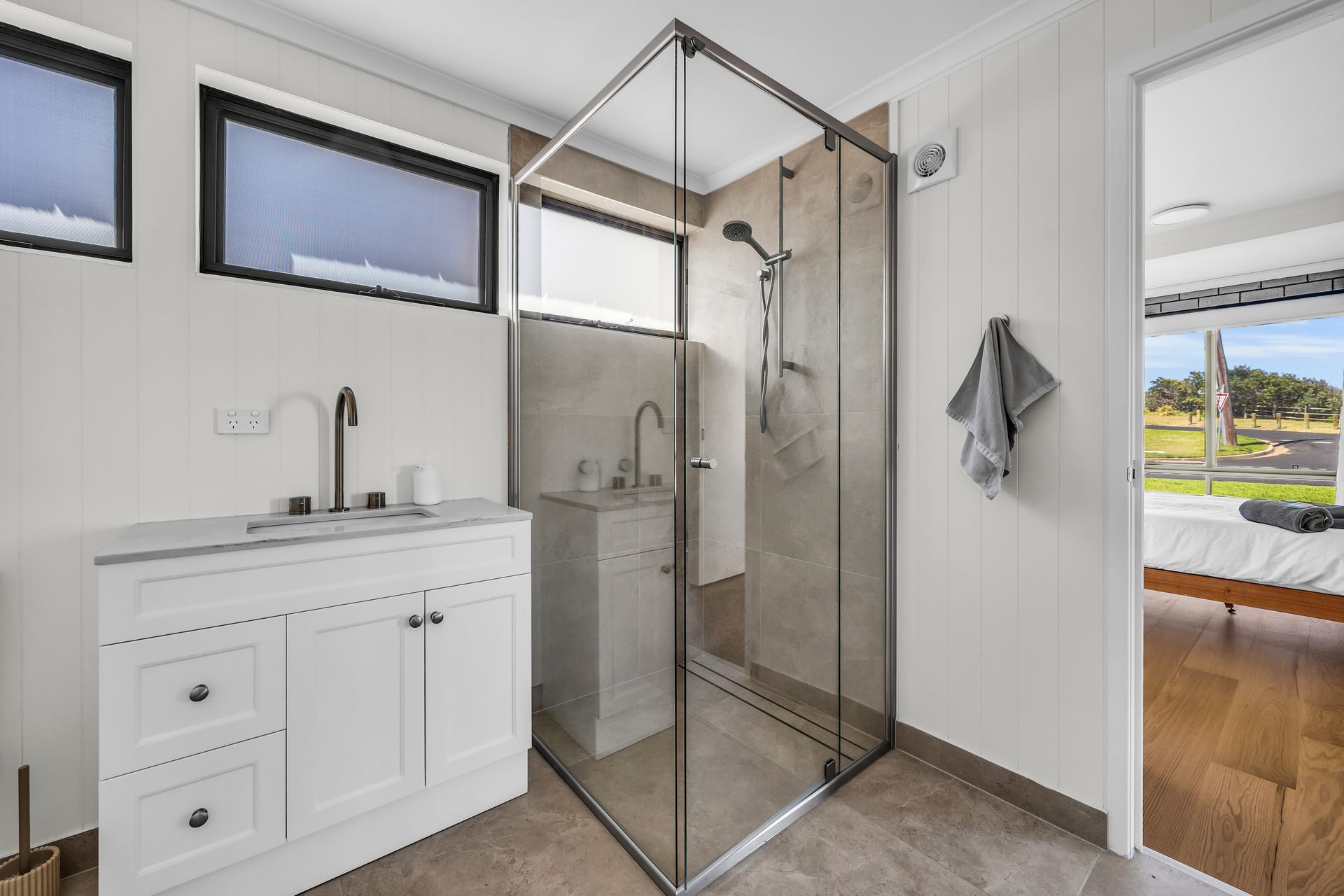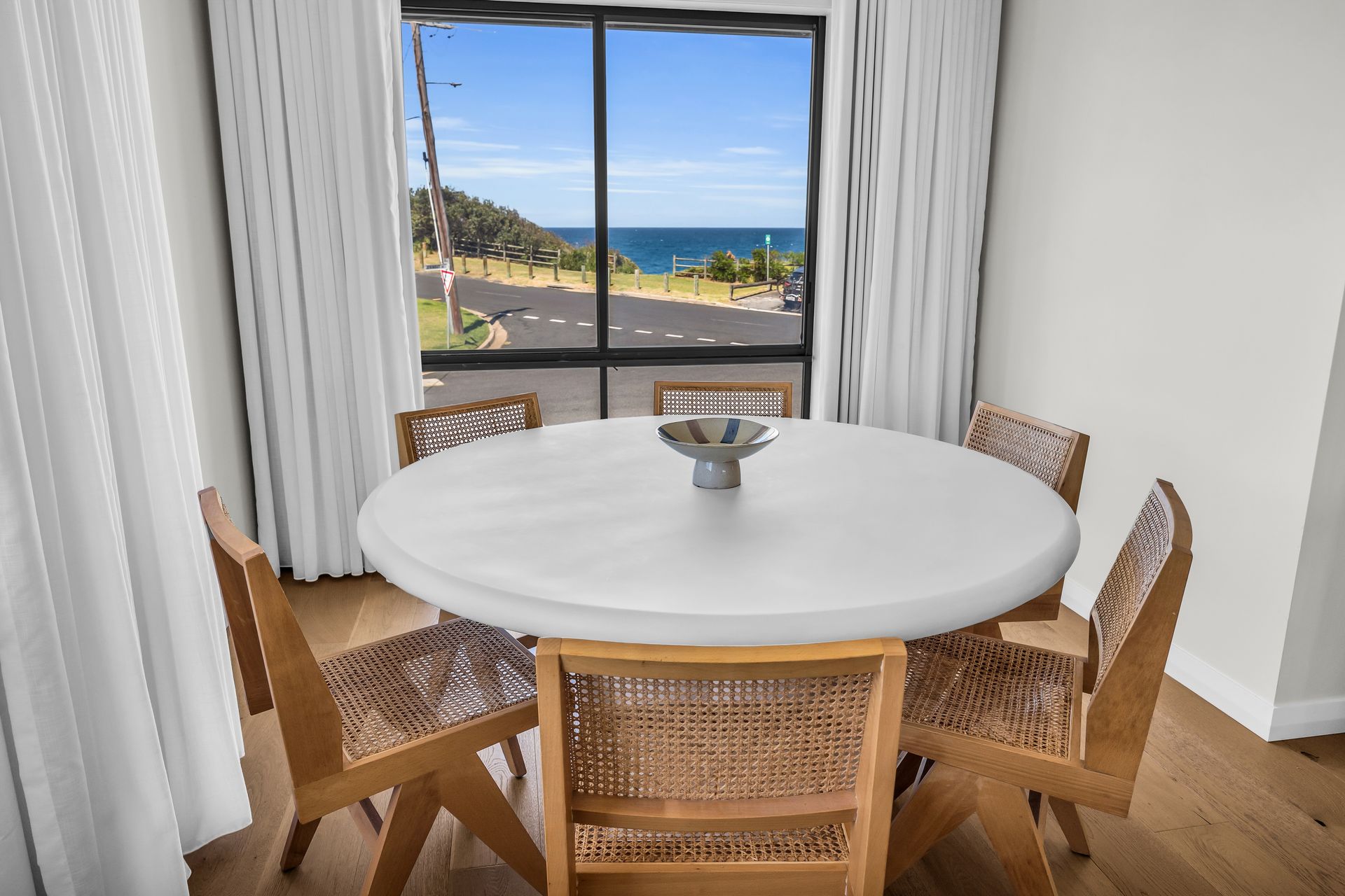 The upper level exudes coastal chic, filled with natural light and stylish furnishings. The open-plan living and dining area is perfect for entertaining, while the fully equipped kitchen makes it easy to prepare fresh local seafood. With windows facing both east and west, enjoy golden sunrises, soft pastel sunsets, and the magic of nature—whales and dolphins playing out front, and kangaroos grazing in the rear.